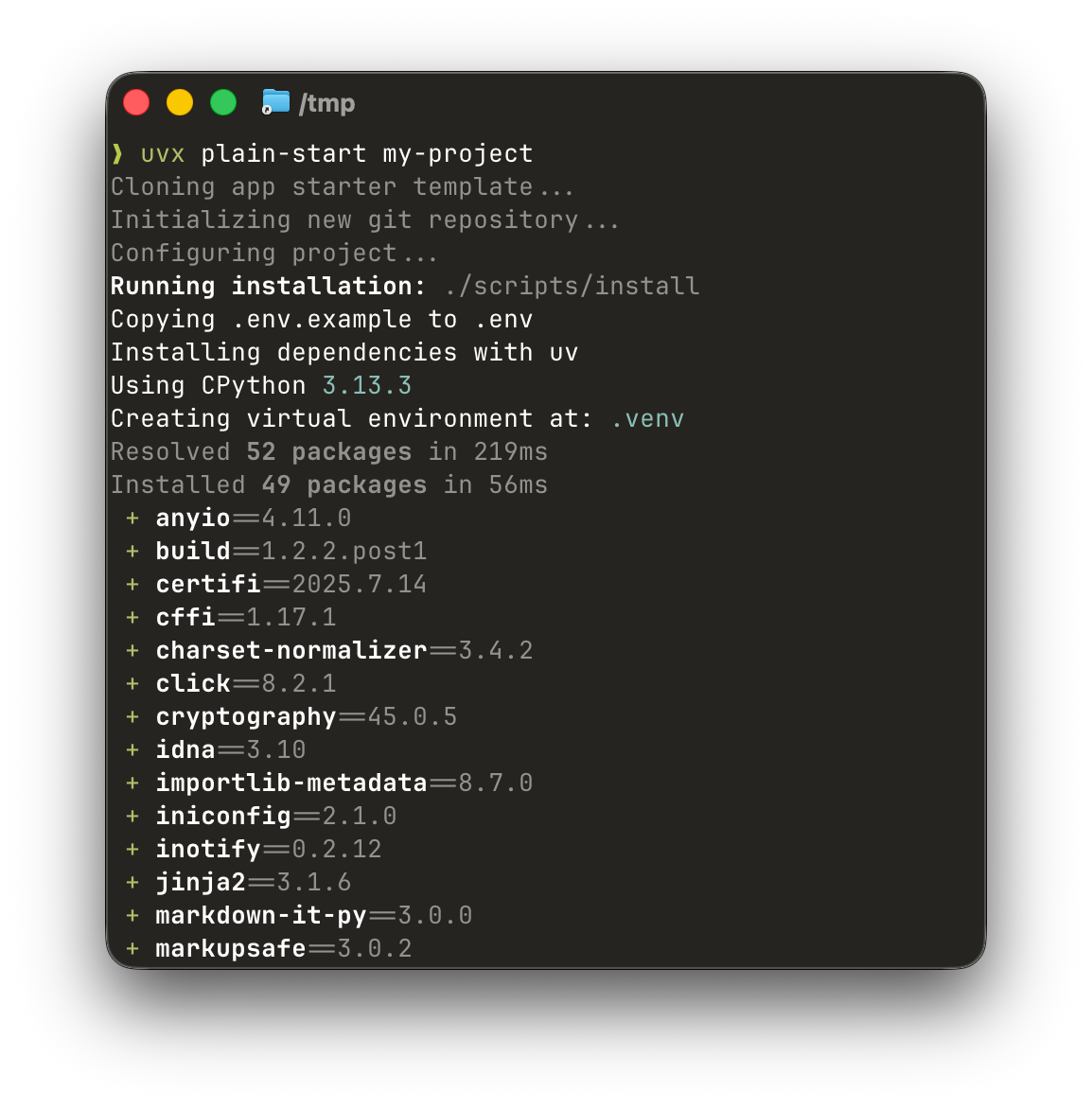 When using plain-dev, your dev "services" now auto-start in the background any time they are required (perfect for a database running in a docker container).