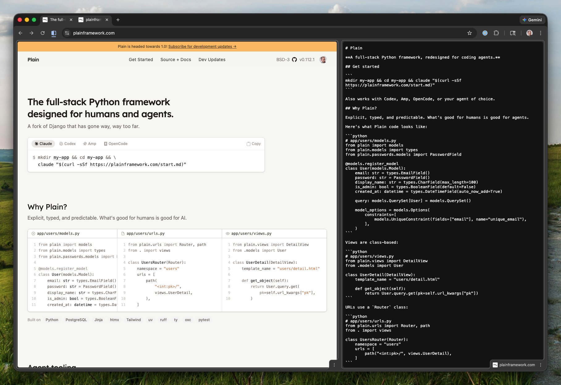 plain devkeeps a compiled version written to .plain/AGENTS.md- use @.plain/AGENTS.md in your own AGENTS md